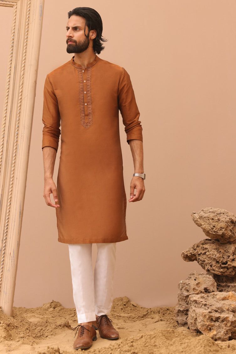 Polyester Orange Special Kurta - J. Junaid Jamshed