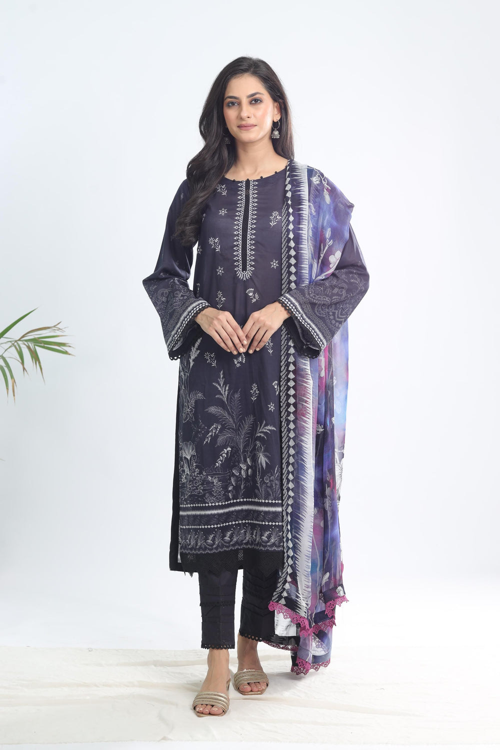 Silk Lawn & Organza Black Stitched Meraki Formal Collection - Vanya