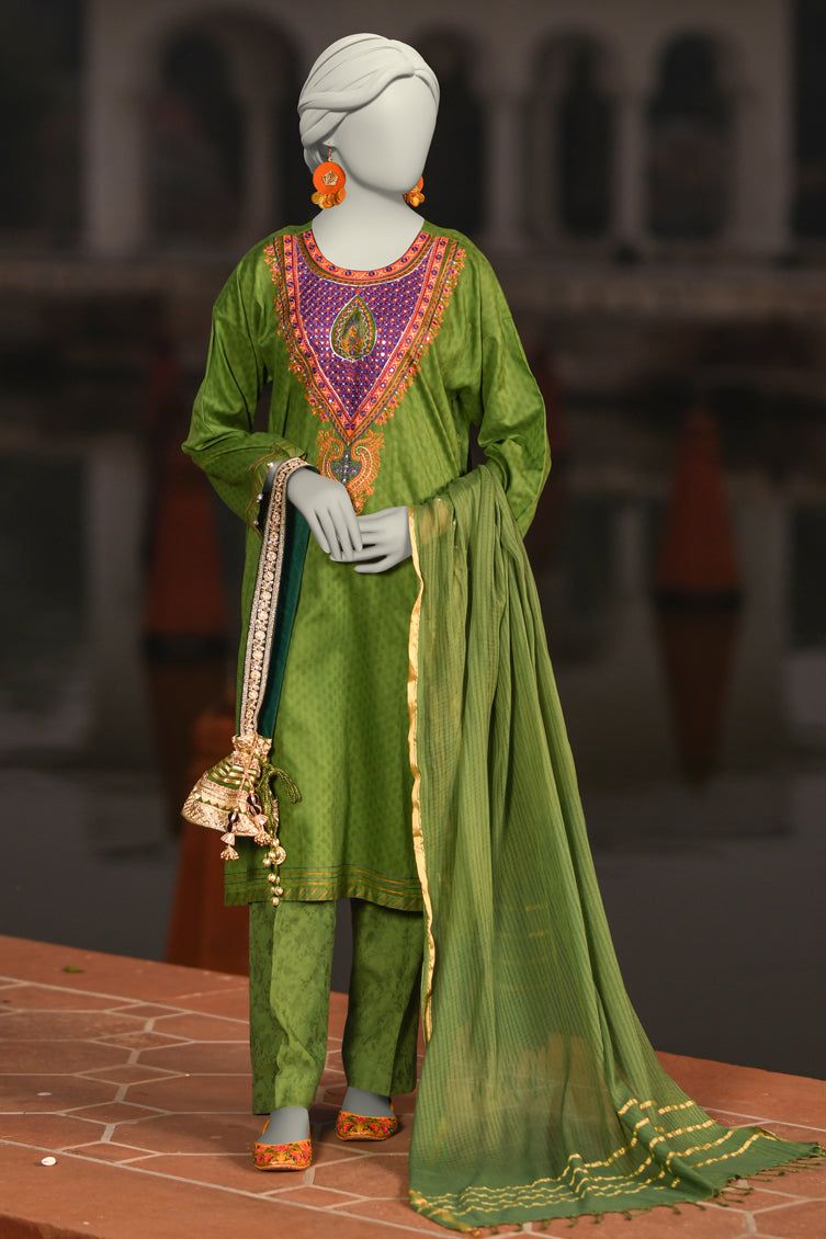 Embroidered Self Jacquard Green Stitched Suit - Alkaram
