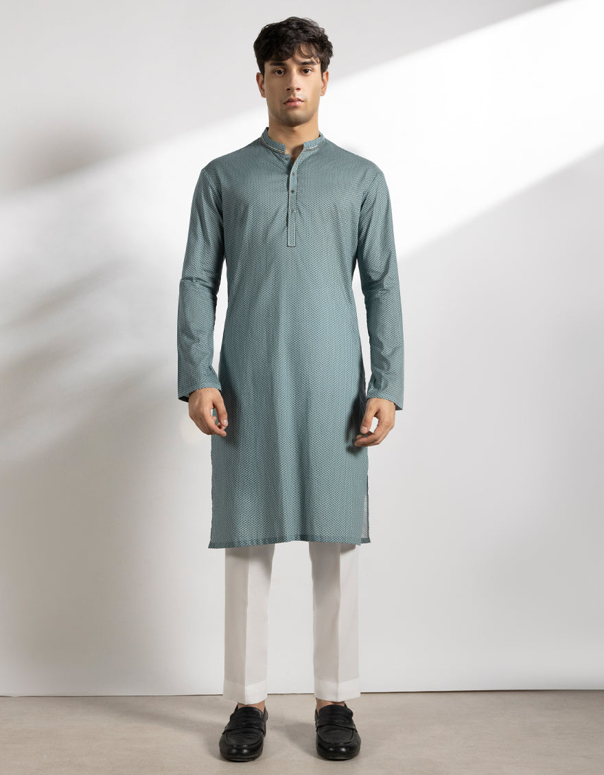 Cotton Light Blue Kurta - J. Junaid Jamshed
