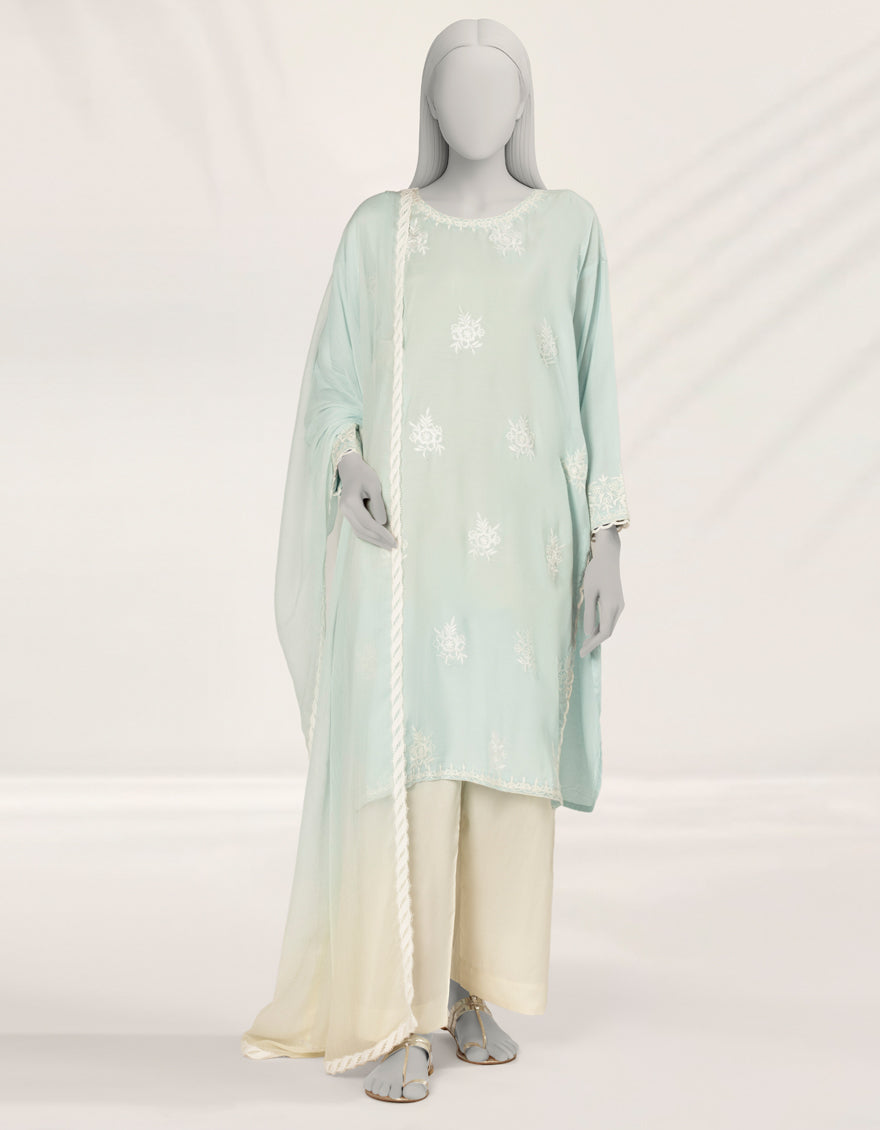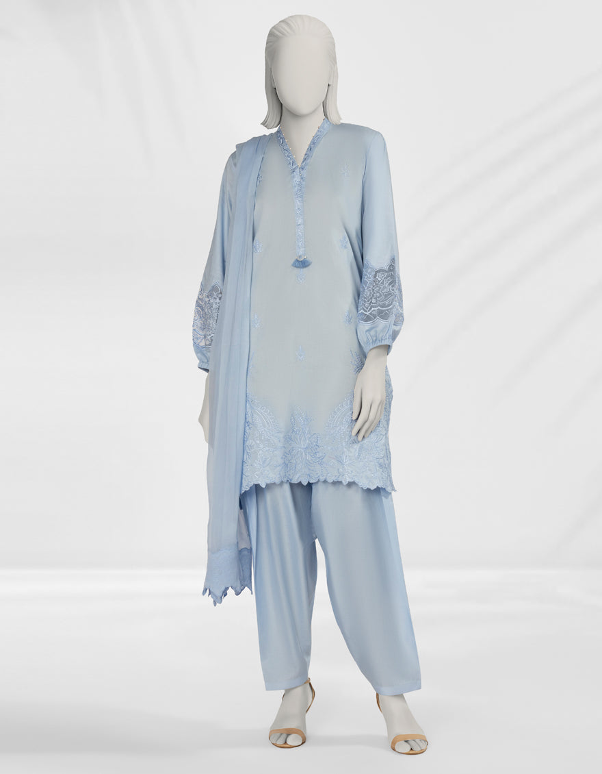 Impure Silk Blue Stitched Suit - J. Junaid Jamshed