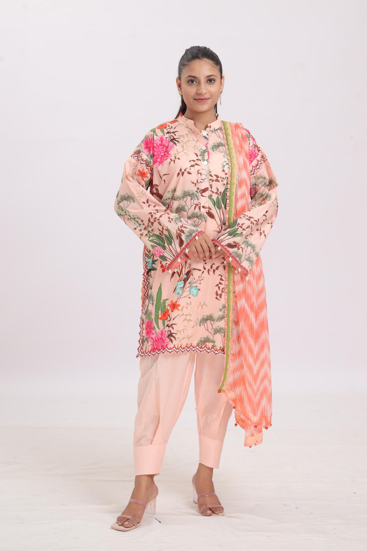 Our stitched range consists of items which are originally released by brands as Unstitched items only. Janan stitches these items into standard sizes so they are ready for you to wear! There may be variations in the stitching style and the embellishments compared to the catalogue image.