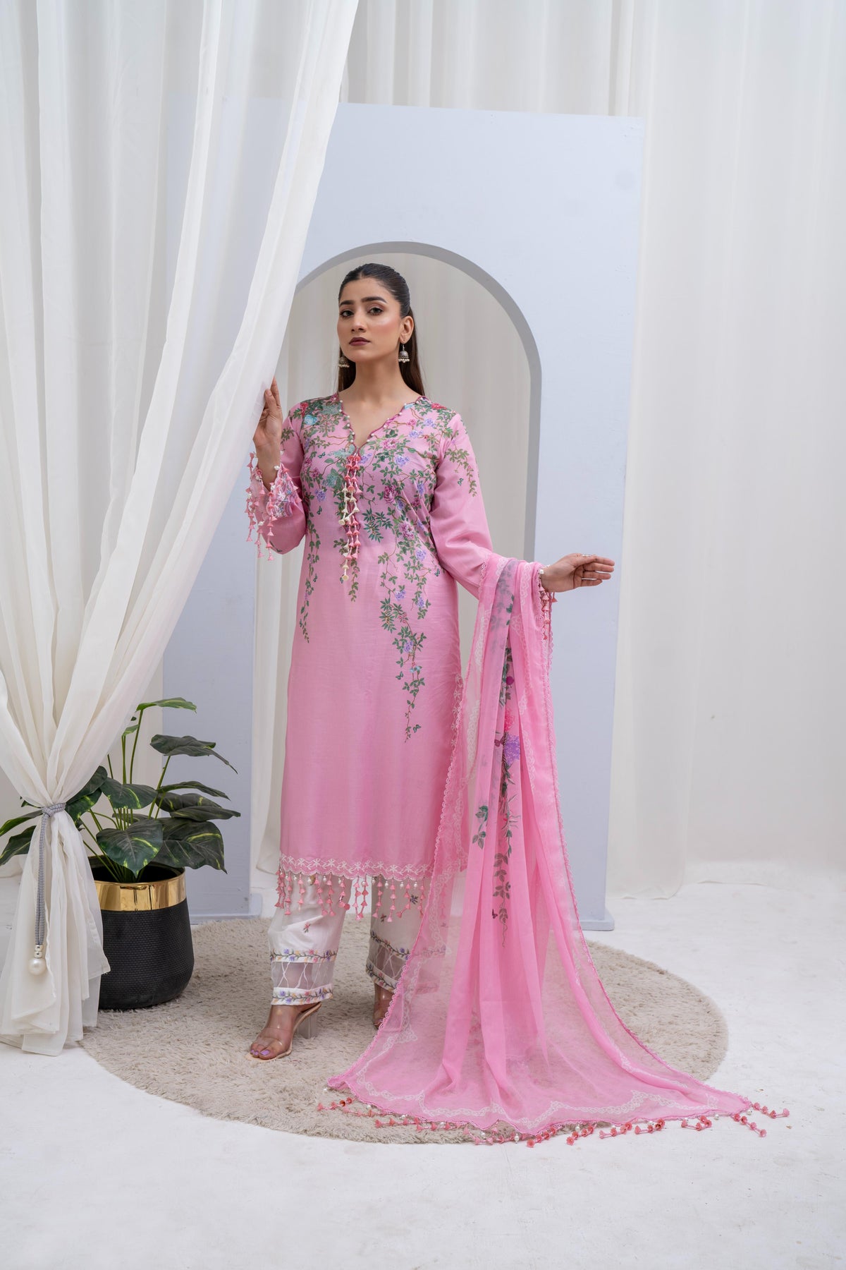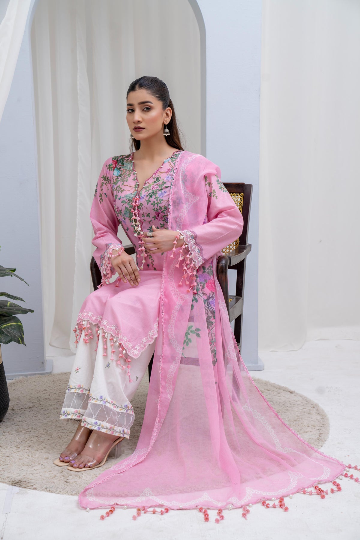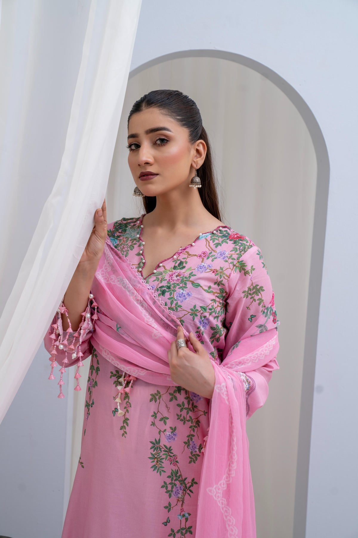 Lawn Pink Stitched Suit - Sana Safinaz Muzlin Stitched