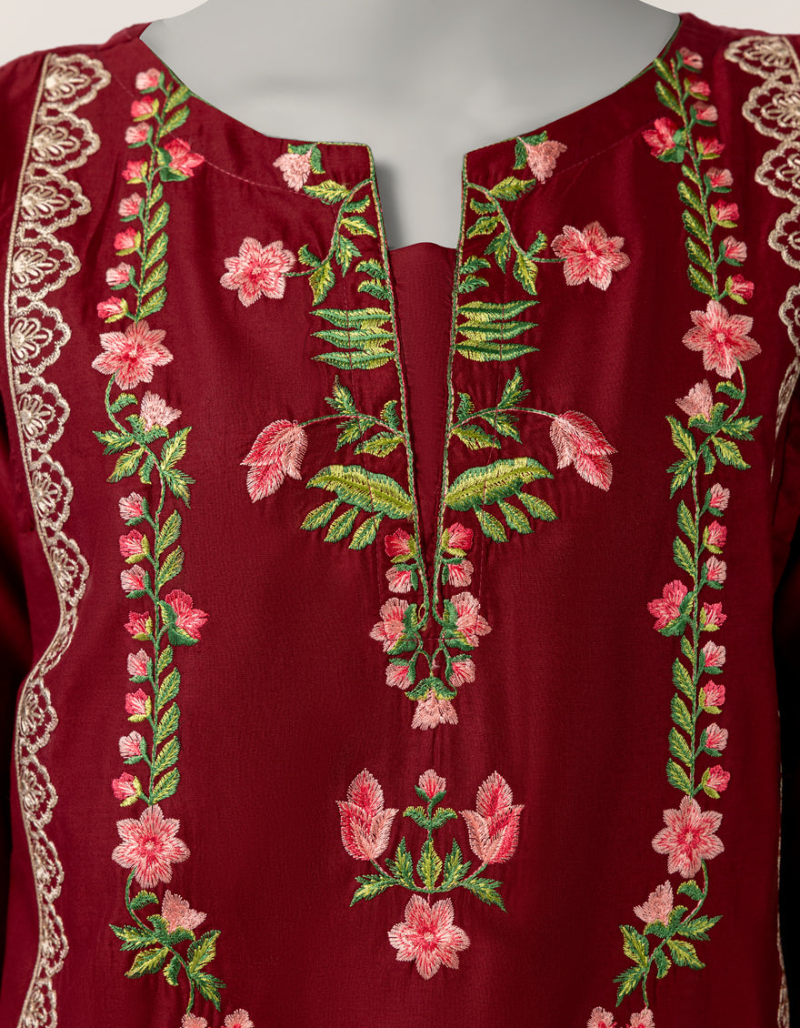 Lawn Maroon Stitched Suit - J. Junaid Jamshed