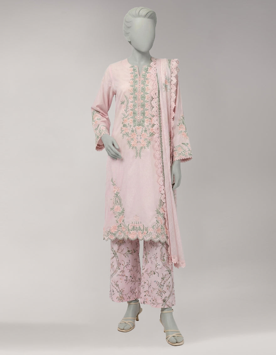 Lawn Pink Unstitched Suit - J. Junaid Jamshed