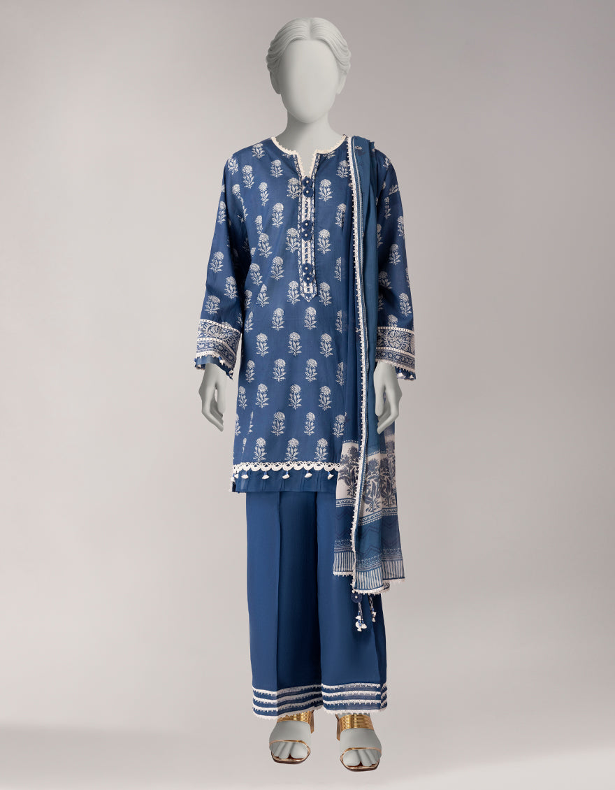 Lawn Blue Unstitched Suit - J. Junaid Jamshed