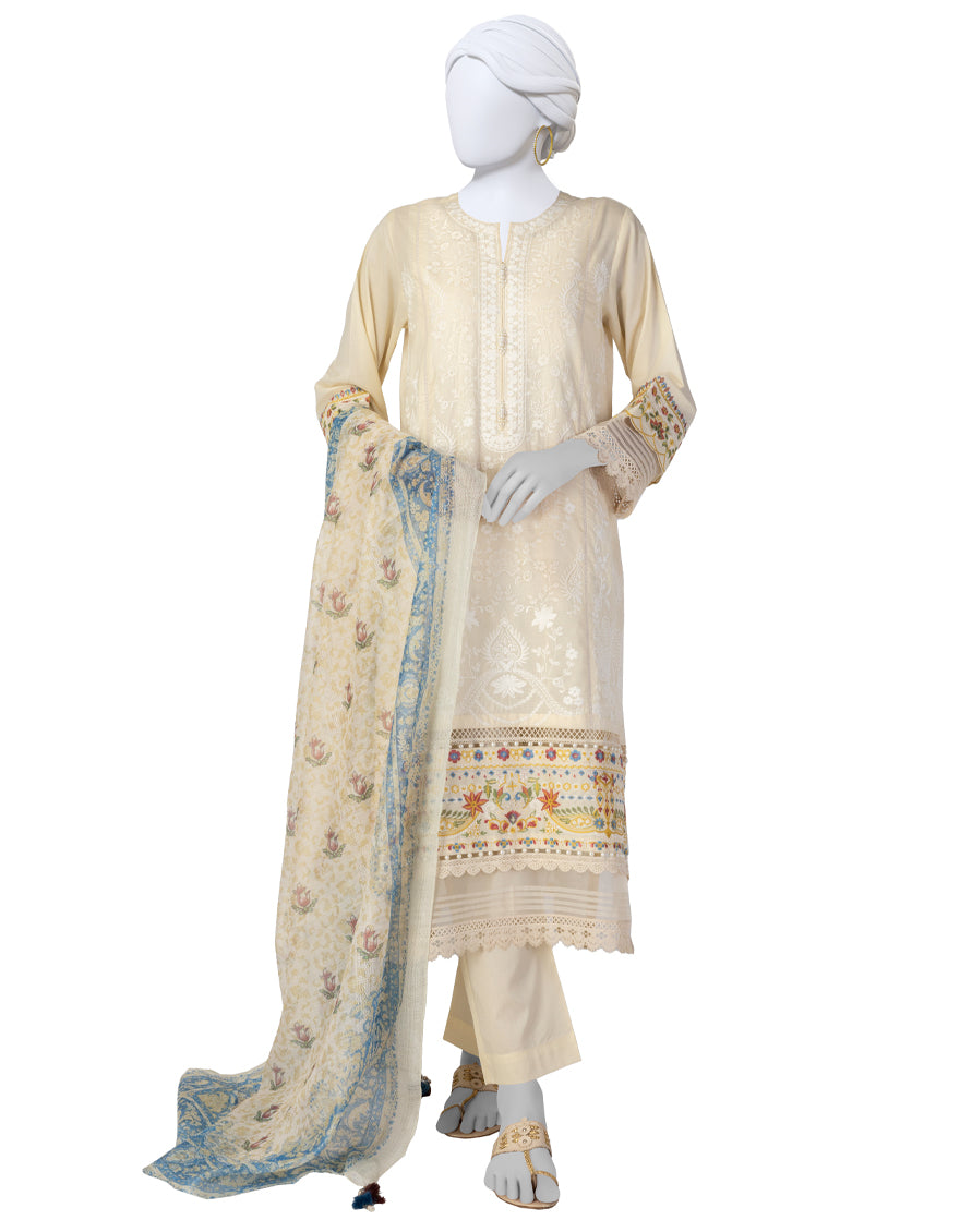 Lawn Off White Unstitched Suit - J. Junaid Jamshed