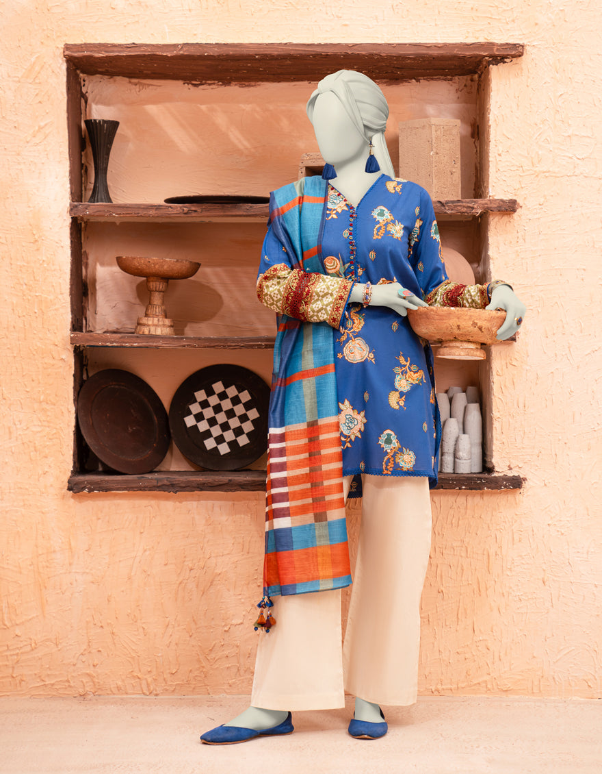 Lawn Blue Unstitched Suit - J. Junaid Jamshed