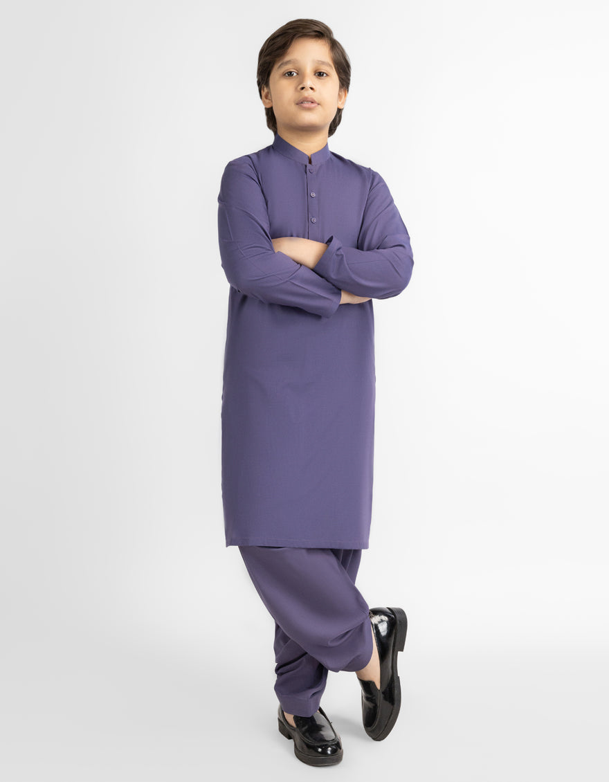 A purple kameez shalwar designed for a bold and stylish casual appearance. Made from blended fabric for comfort. Ideal for daily wear.