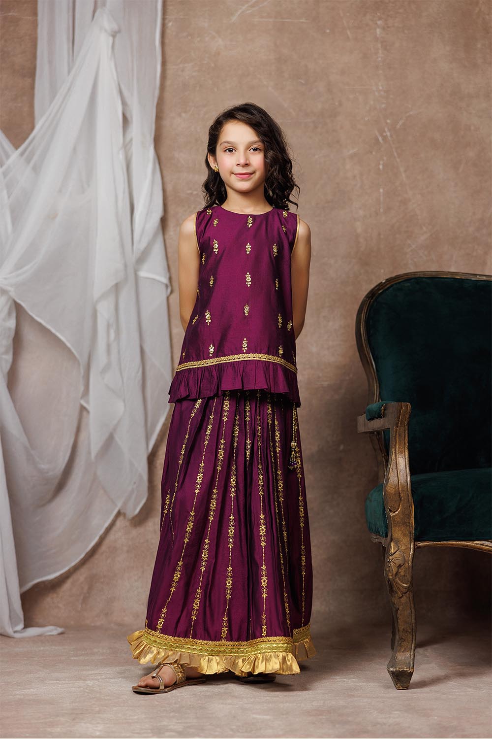 Viscose Chambray Katan Purple & Gold Stitched Suit - Senorita