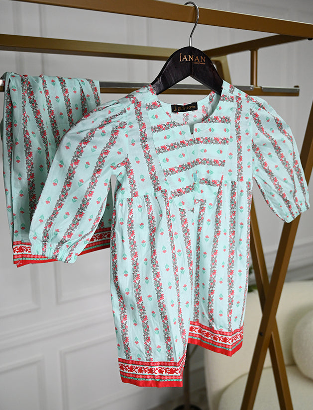 Viscose Raw Silk Turquoise Stitched Suit - Senorita