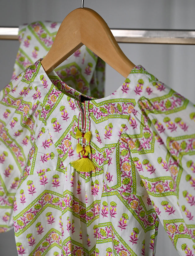 Cotton Lawn White & Gold Stitched Suit - Senorita