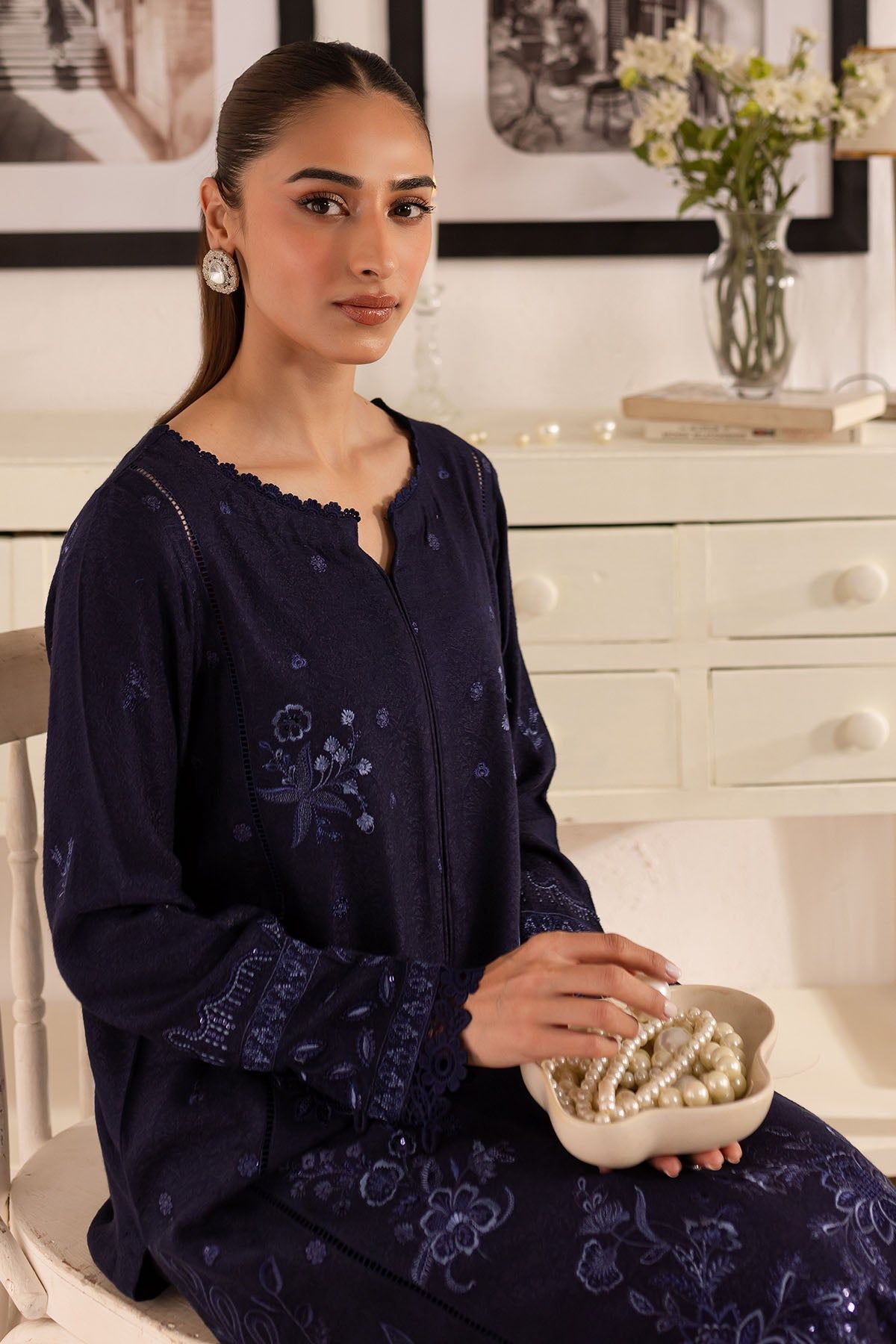 Leather Peach Navy Blue Stitched Suit - Nureh