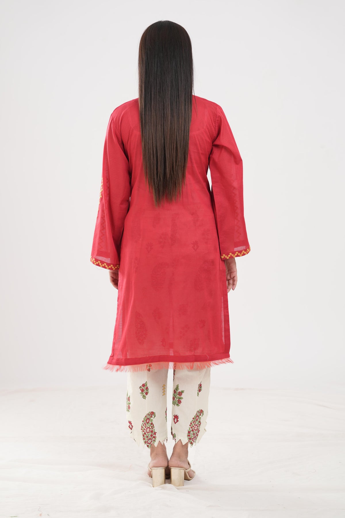 2 Piece Embroidered Lawn Shirt Shalwar in Red Color