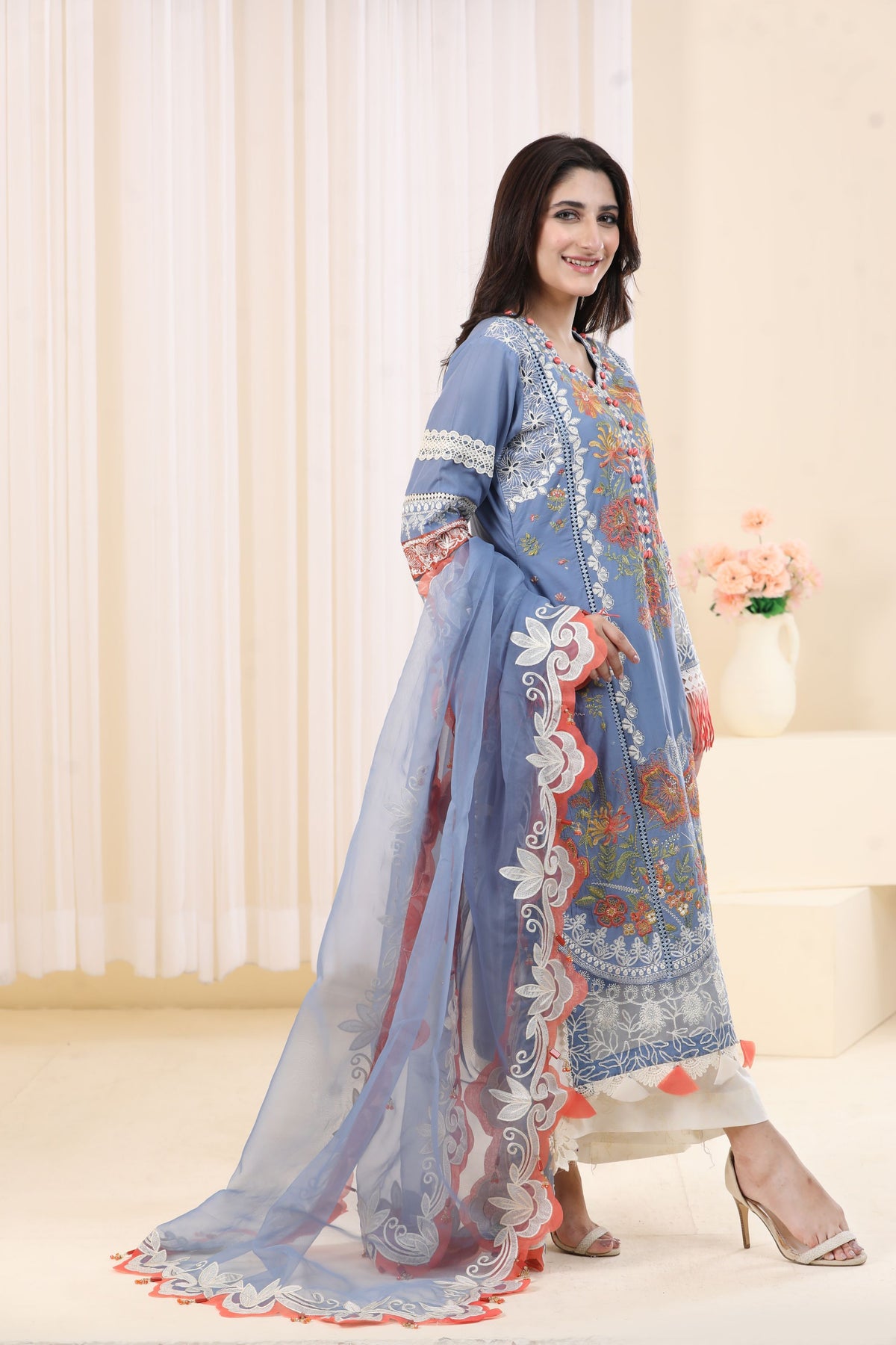 Grey 3 Piece Suit - Elan Luxury Lawn