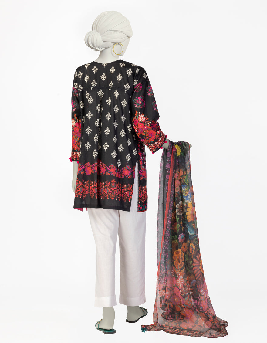 Lawn Black Stitched Suit - J. Junaid Jamshed