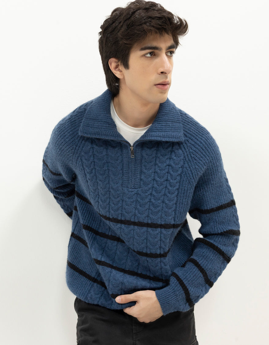 NEPTUNE D - INDIGO HALF-ZIP MOCK NECK SWEATER - J. Junaid Jamshed