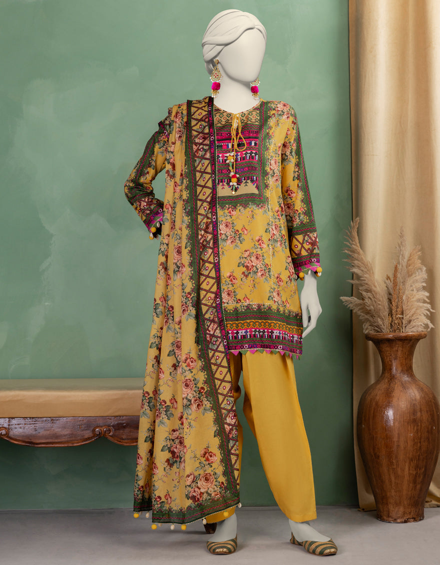 Lawn Yellow Unstitched Suit - J. Junaid Jamshed