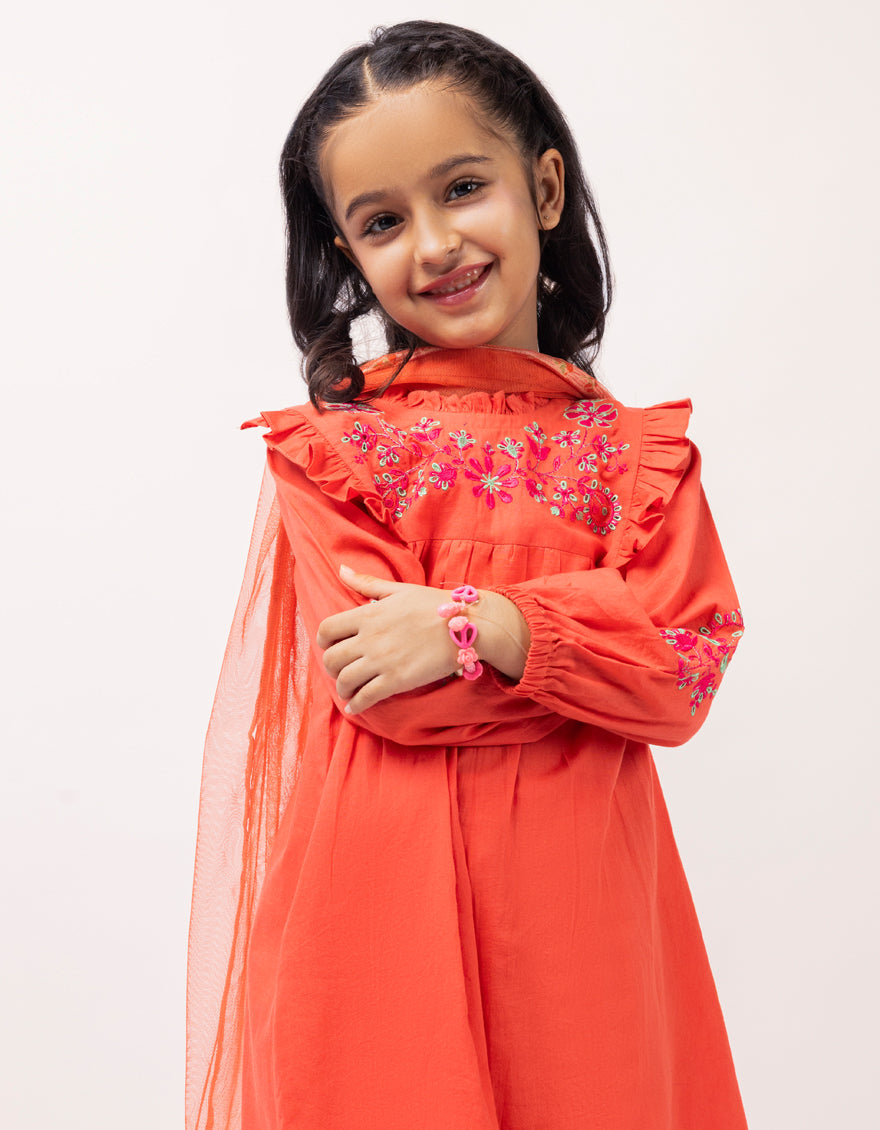Lawn Red Stitched Suit - J. Junaid Jamshed