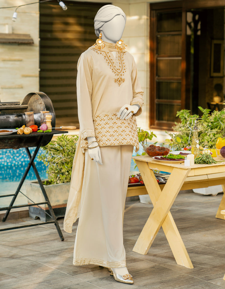 Silk Beige Stitched Suit - J. Junaid Jamshed