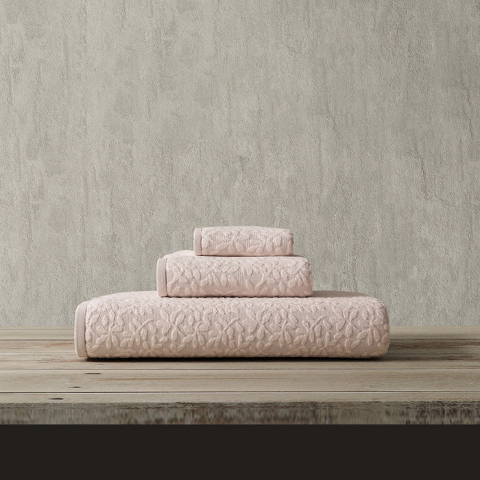 Vantona Luxury Leaf Jacquard Cotton Towel – Pink