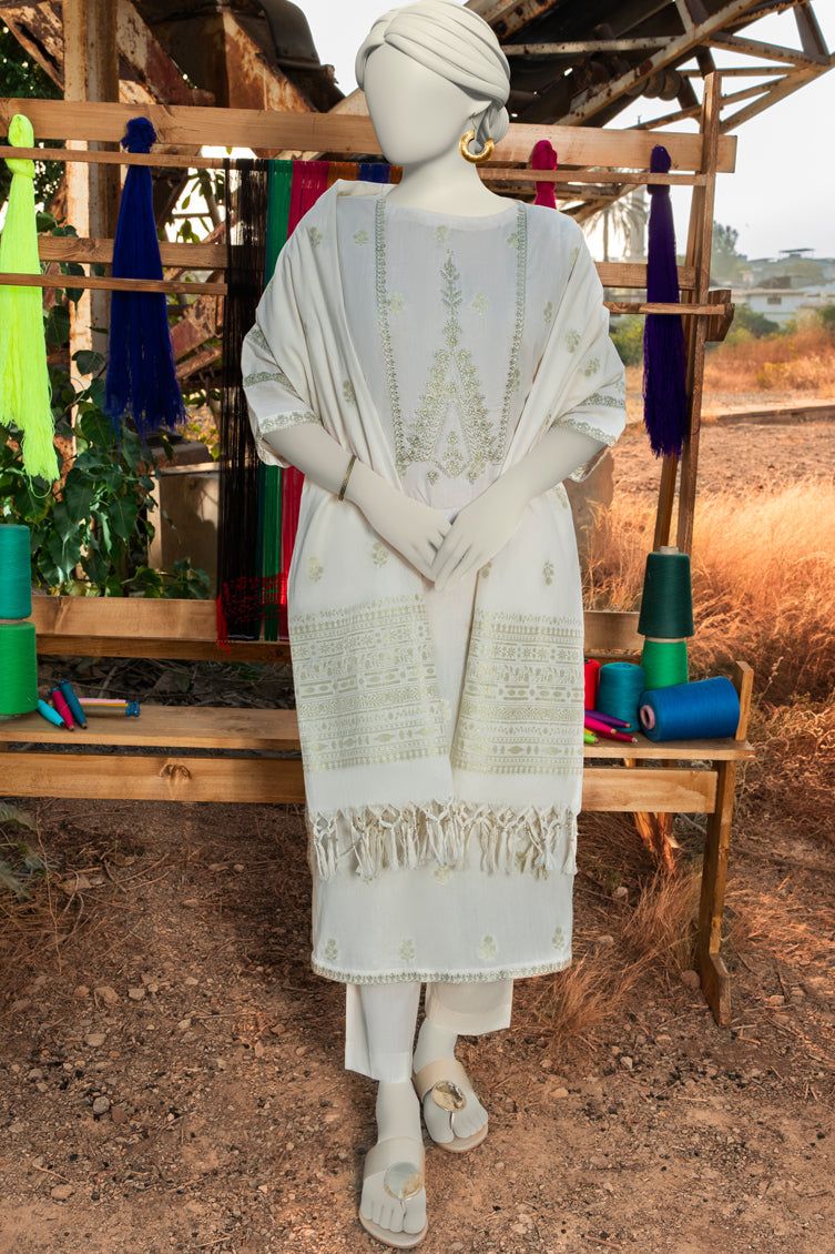 Jacquard White Unstitched Suit - J. Junaid Jamshed