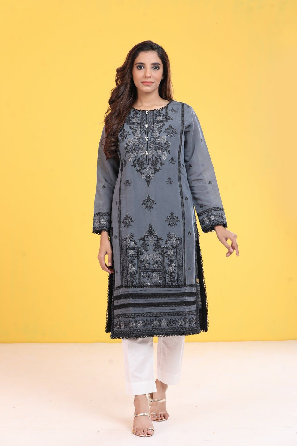 Get ready to make a bold fashion statement with Mawra Hocane in the breathtaking 'ZARI SITARA' ensemble. This shirt, meticulously crafted from paper cotton, features a striking spanish gray color that commands attention. Embellished with shimmering sequins and intricate black threadwork, it exudes an air of opulence. The embroidered panels, and borders add a touch of artistry and finesse. Step into the spotlight and unleash your inner diva donning this exquisite design.