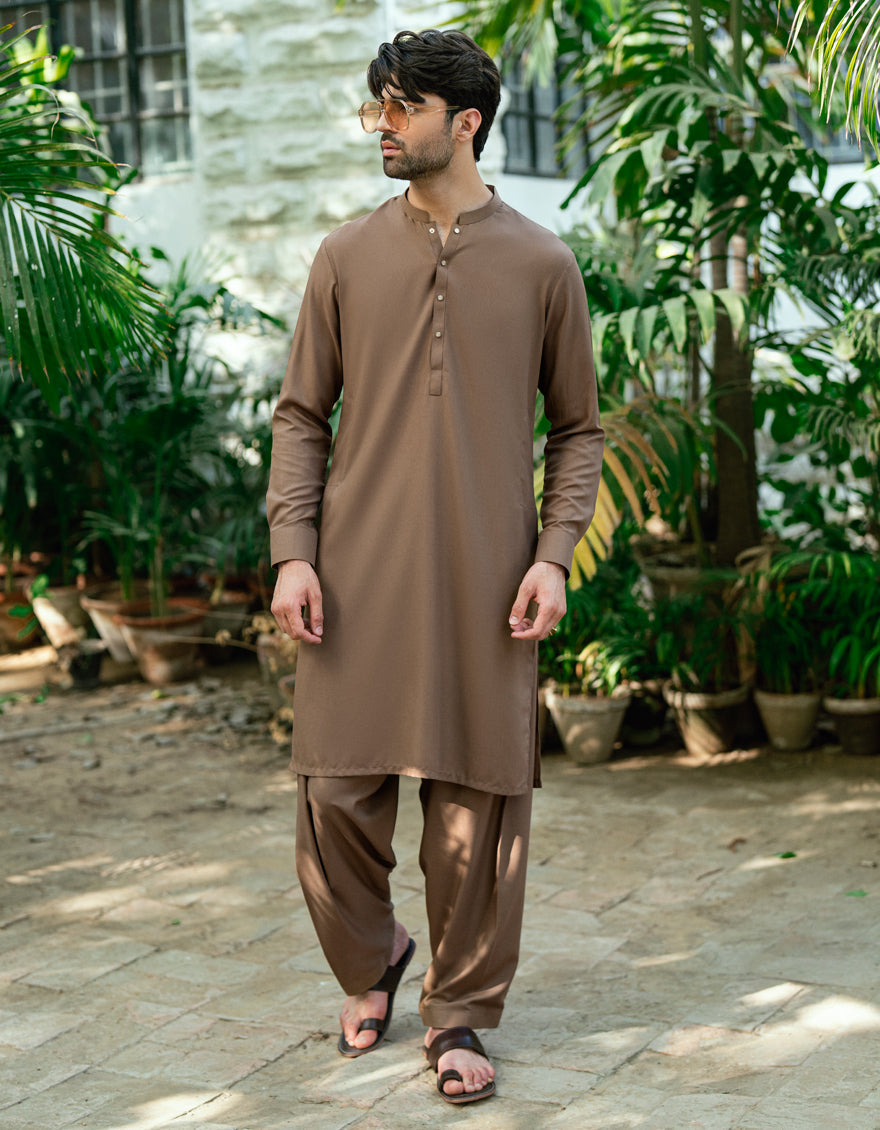 Blended Brown Shalwar Kameez - J. Junaid Jamshed