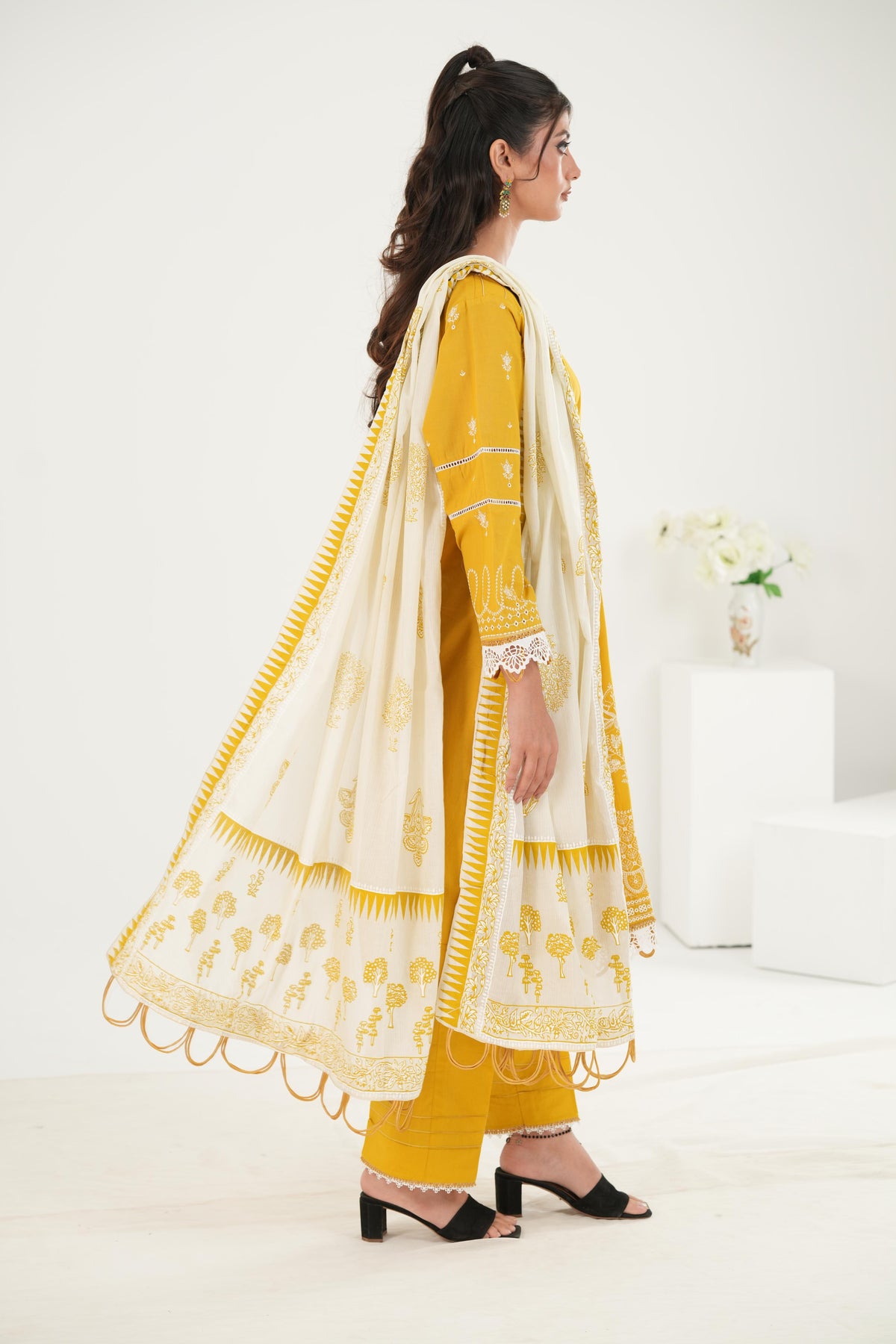 Experience the elegance of traditional craftsmanship with this 3-piece embroidered lawn set, featuring a shirt, shalwar, and dupatta adorned with delicate Chikankari embroidery. Designed for comfort and style, the breathable lawn fabric ensures ease in warmer climates while the intricate detailing adds a sophisticated touch. Perfect for formal gatherings or cultural events, this ensemble combines heritage artistry with modern wearability.