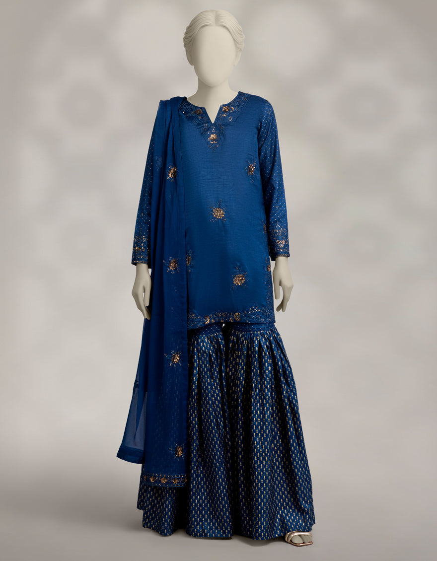Raw Silk Blue Stitched Suit - J. Junaid Jamshed