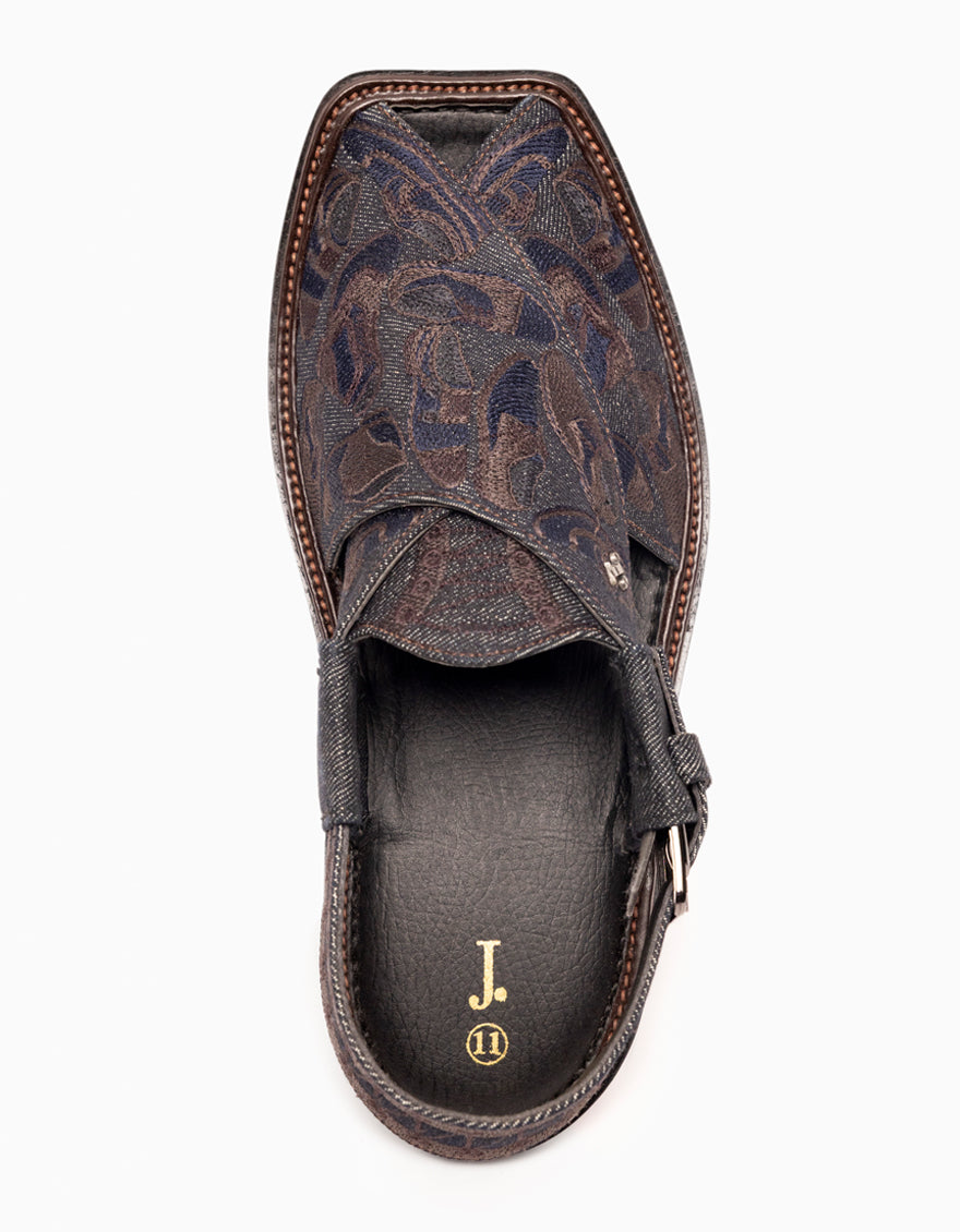 Denim Denim Black Peshawari Chappal - J. Junaid Jamshed