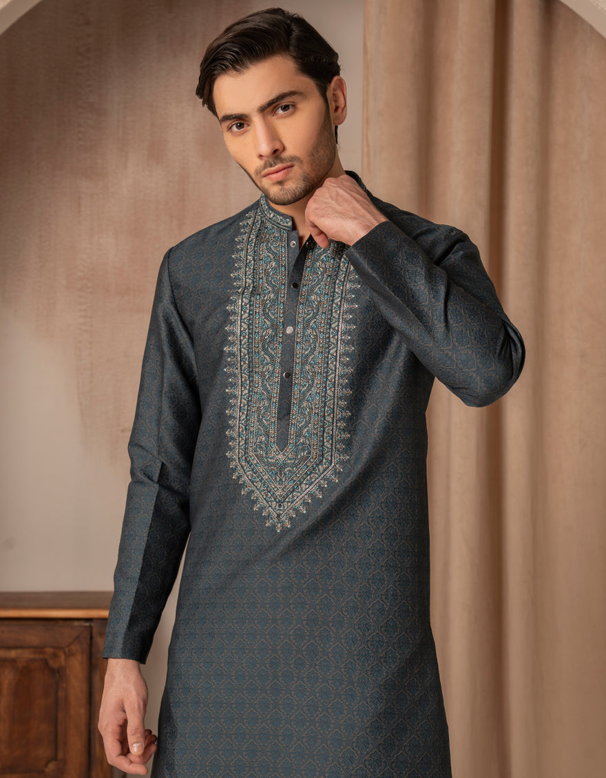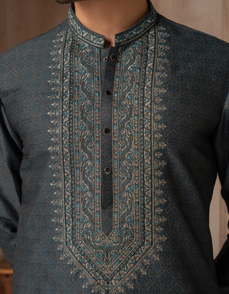 Blended Teal Blue Special Kurta - J. Junaid Jamshed