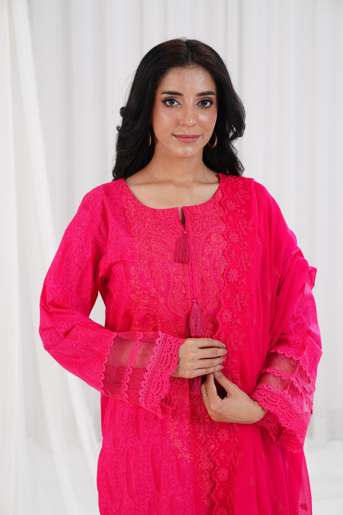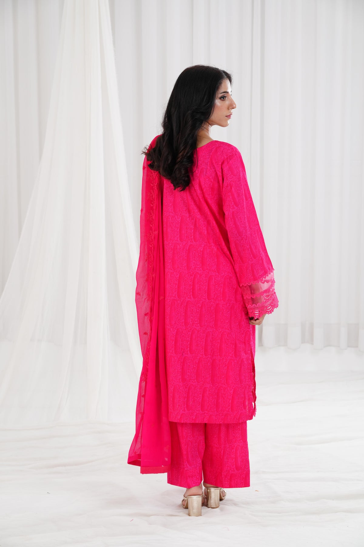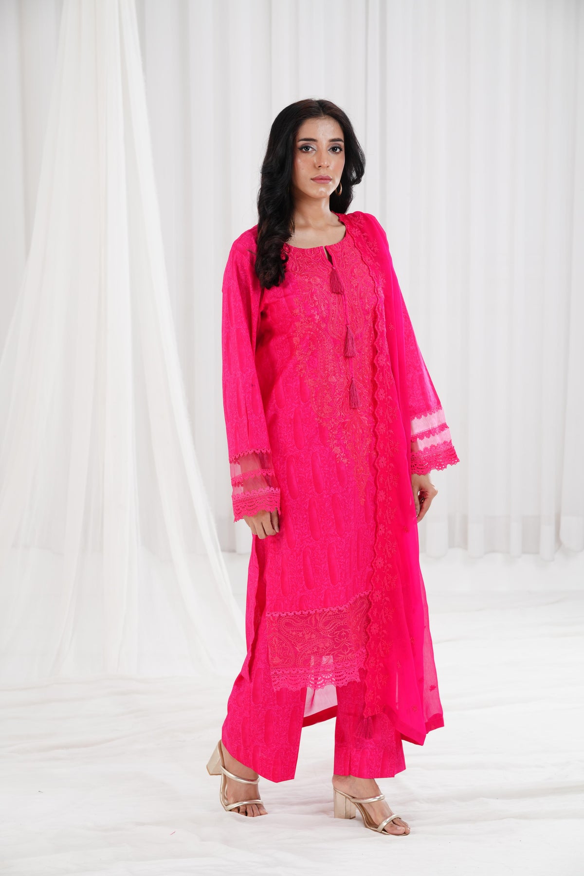 Elevate your every day with this effortlessly printed embroidered three-piece from the latest unstitched summer collection.