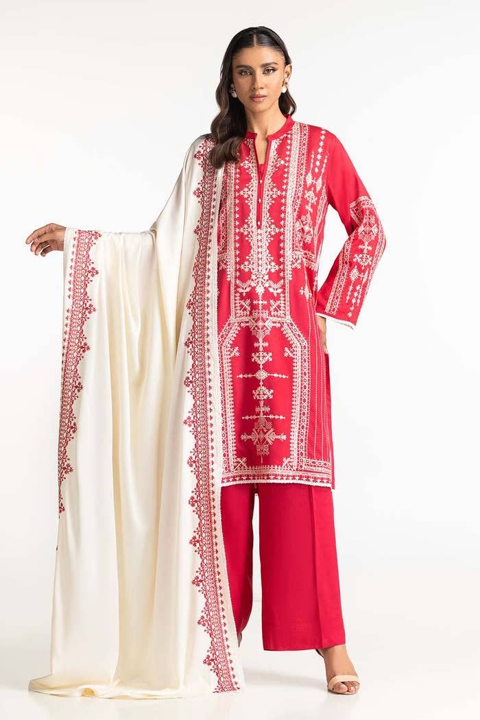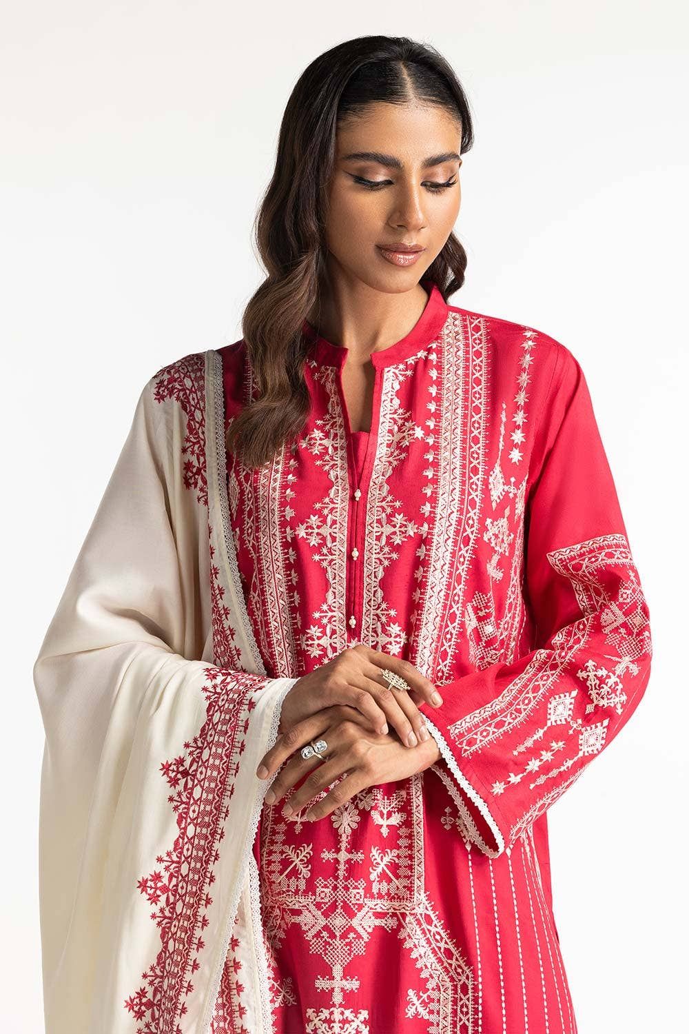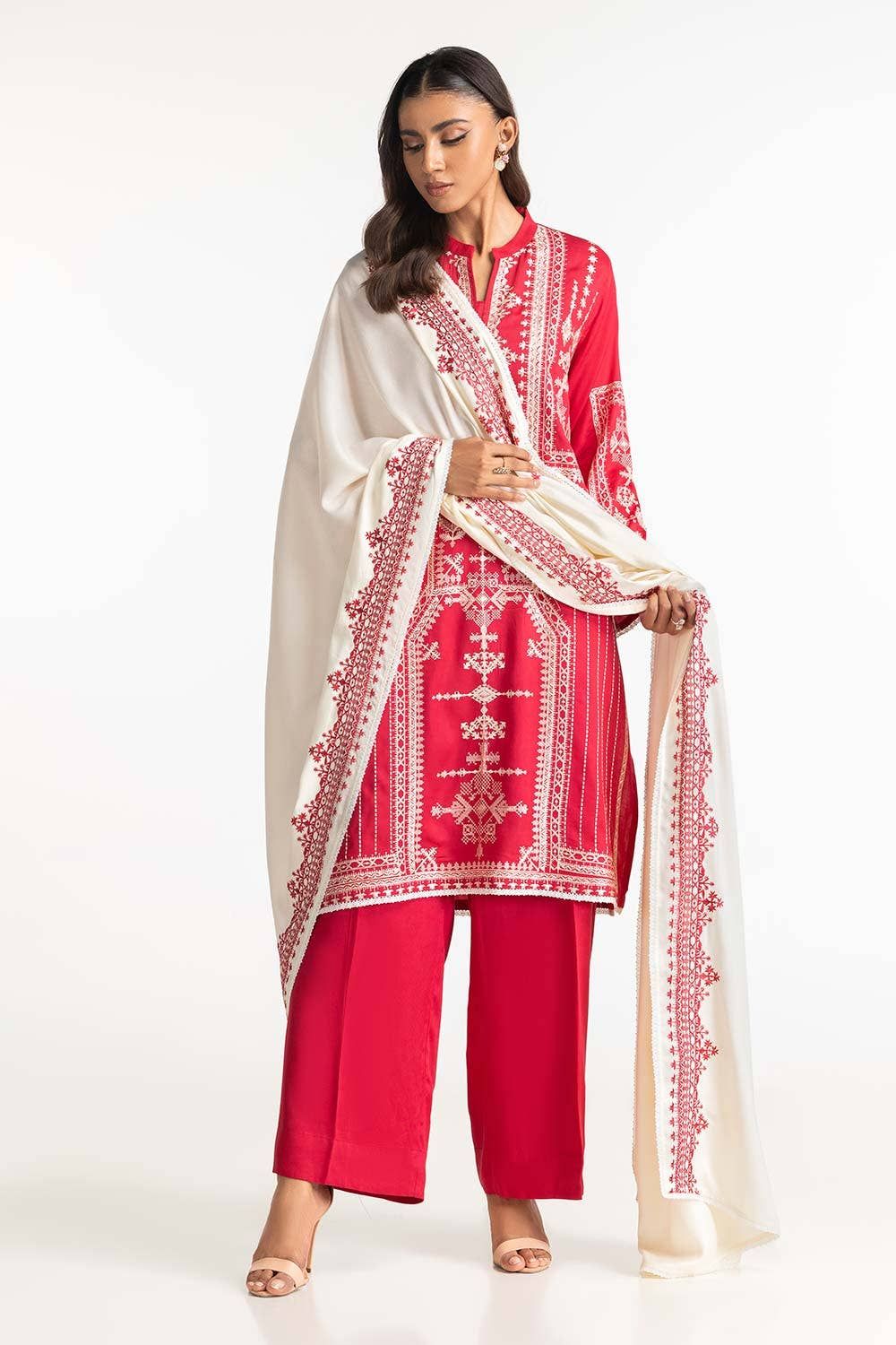 Color: Red Product Type: 3PC Shirt Fabric: Cotail Dupatta Fabric: Cotail Trouser Fabric: Cotail Gender: Women Ready To Wear Type: 3 Piece