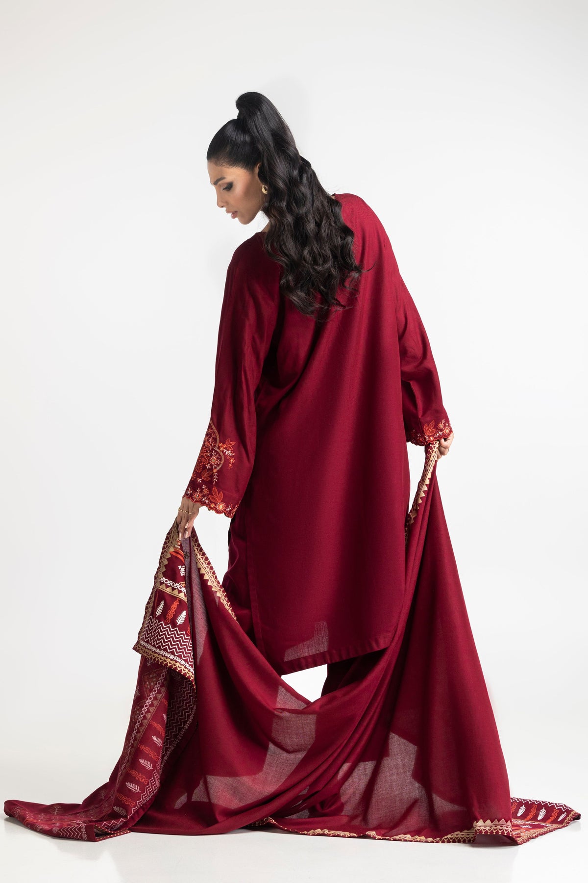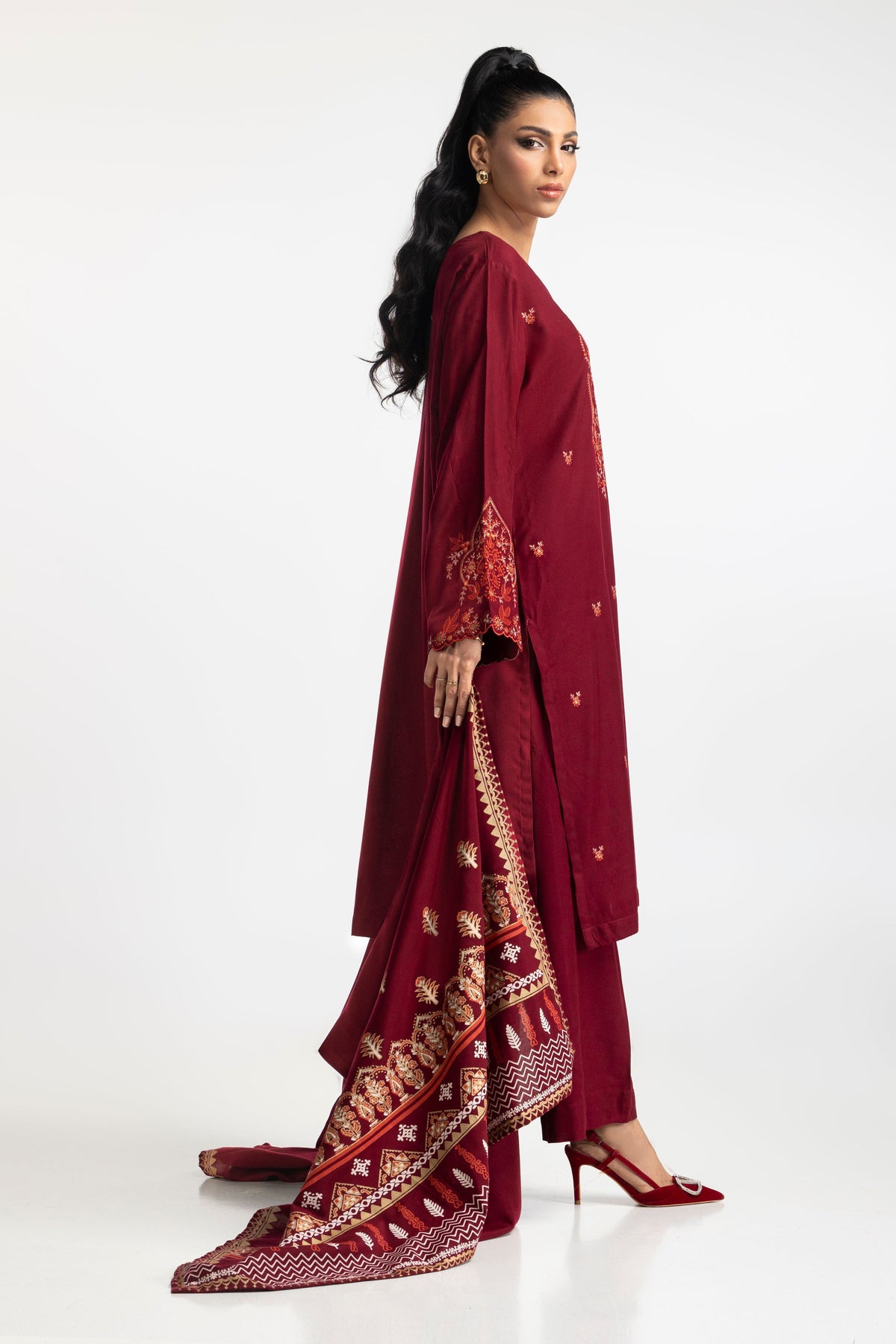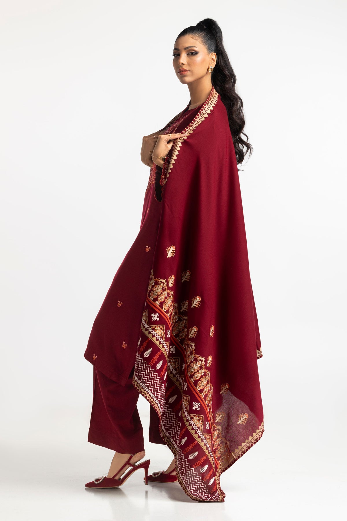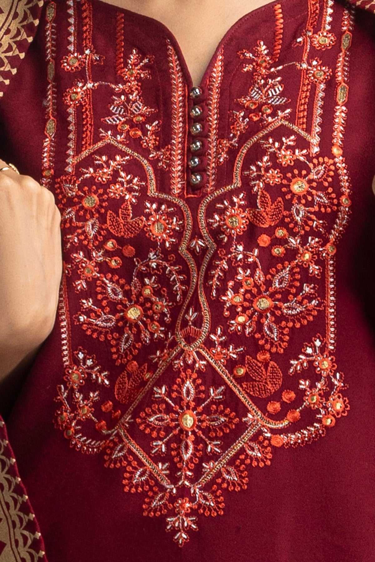 Acrylic Maroon Stitched Suit - Gul Ahmed