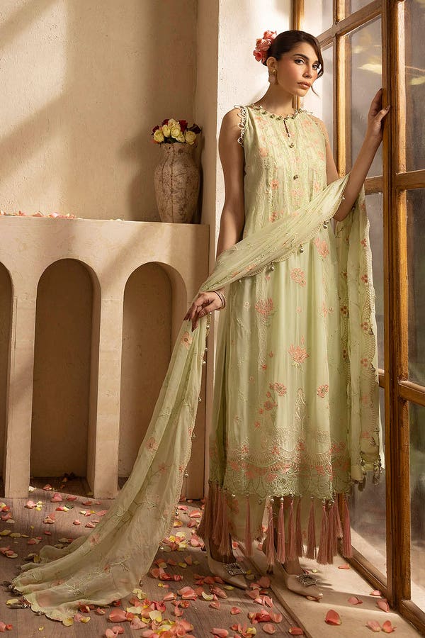 Embroidered Chiffon Light Green Stitched Suit - Gul Ahmed