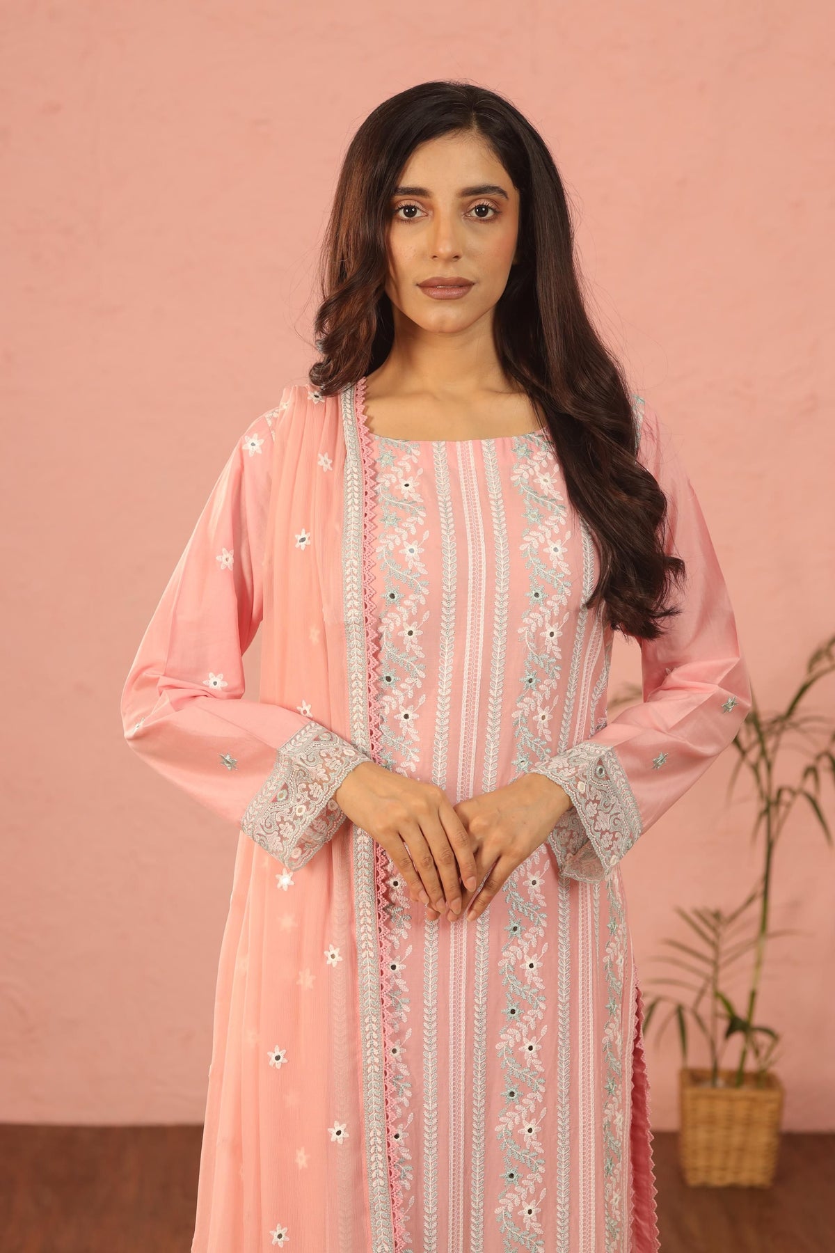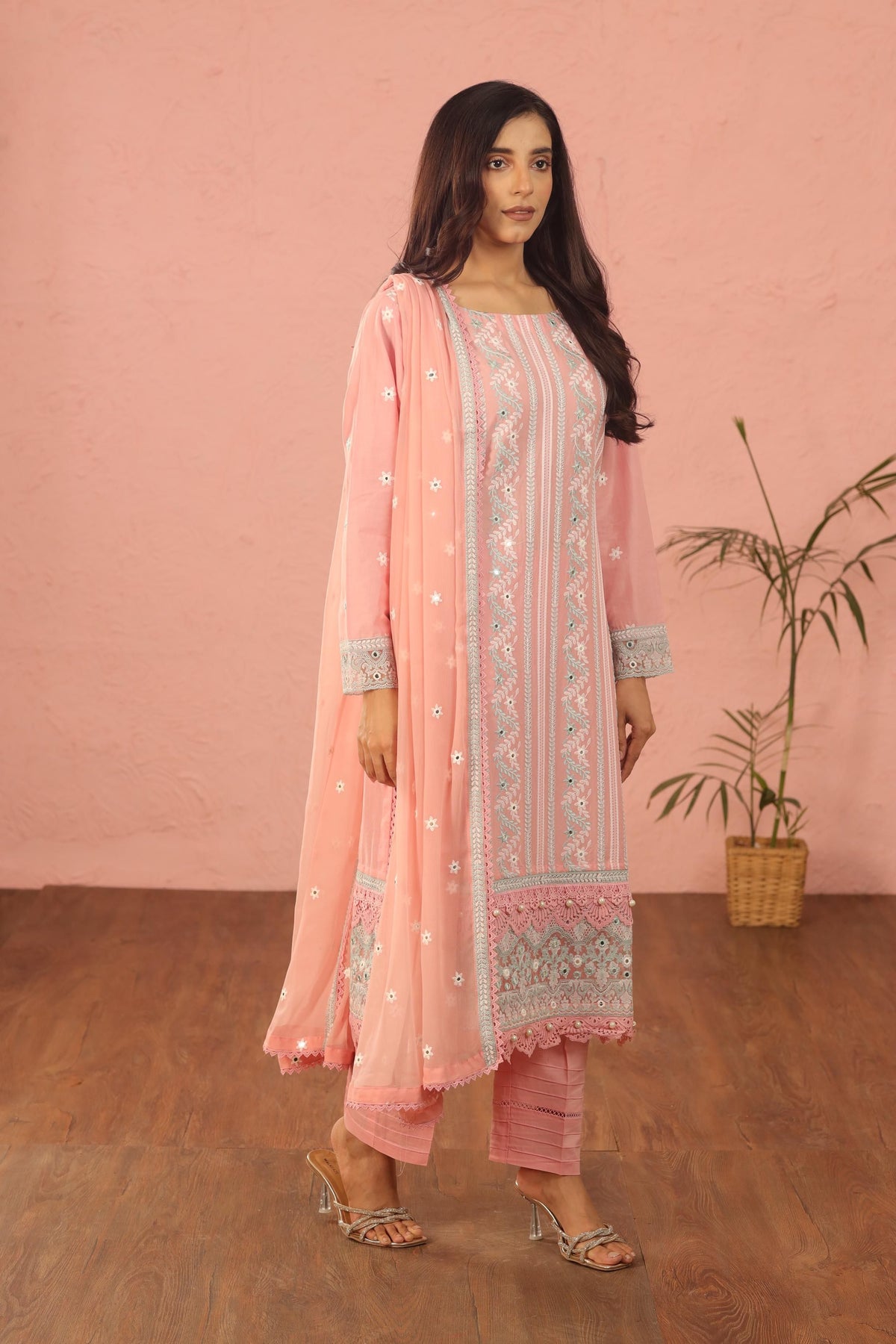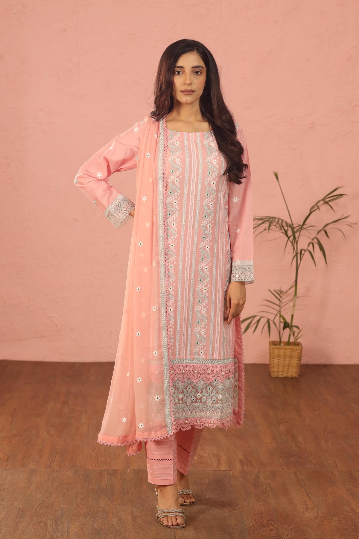 Embroidered Lawn Tea Pink 3 Piece Suit - Al Karam