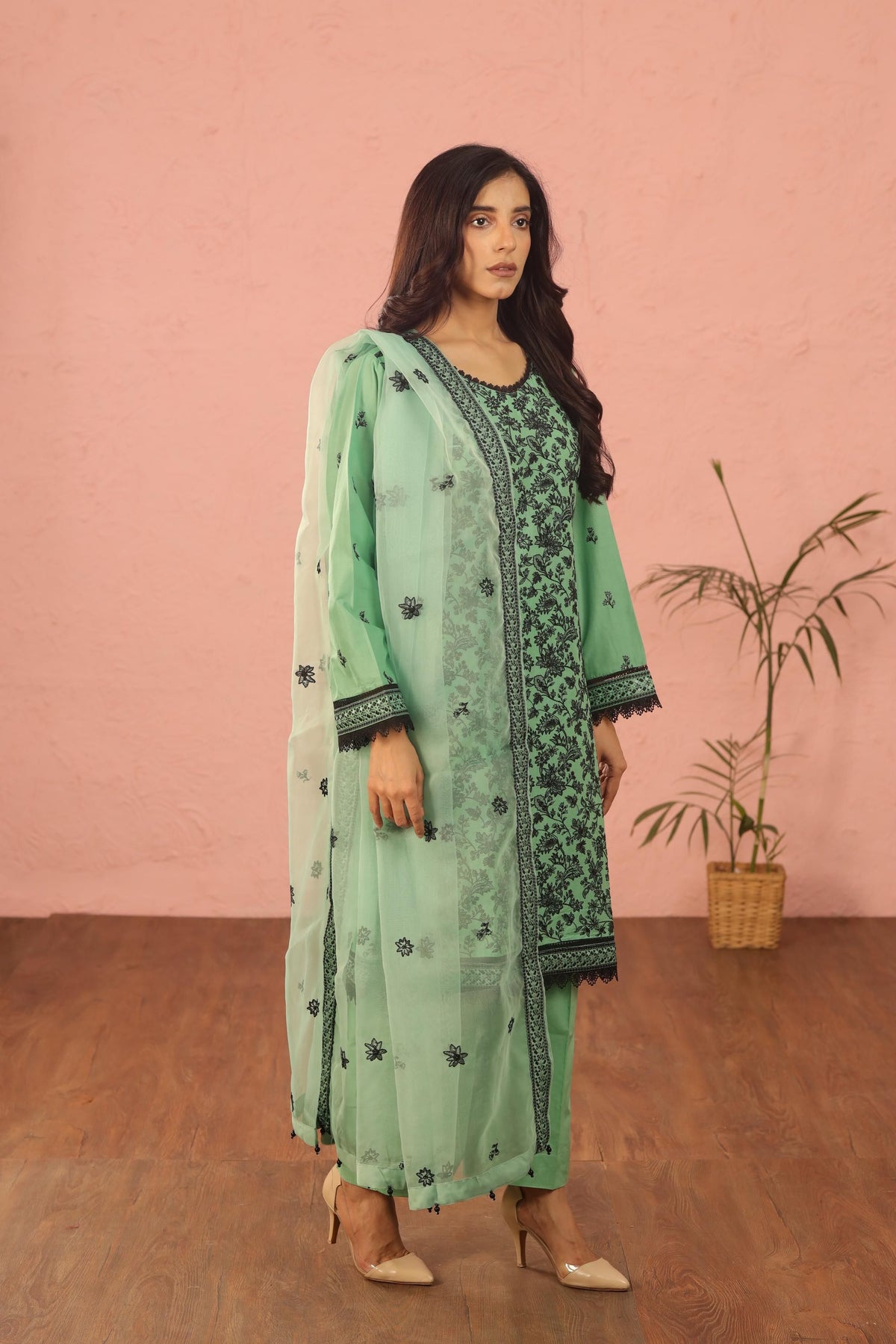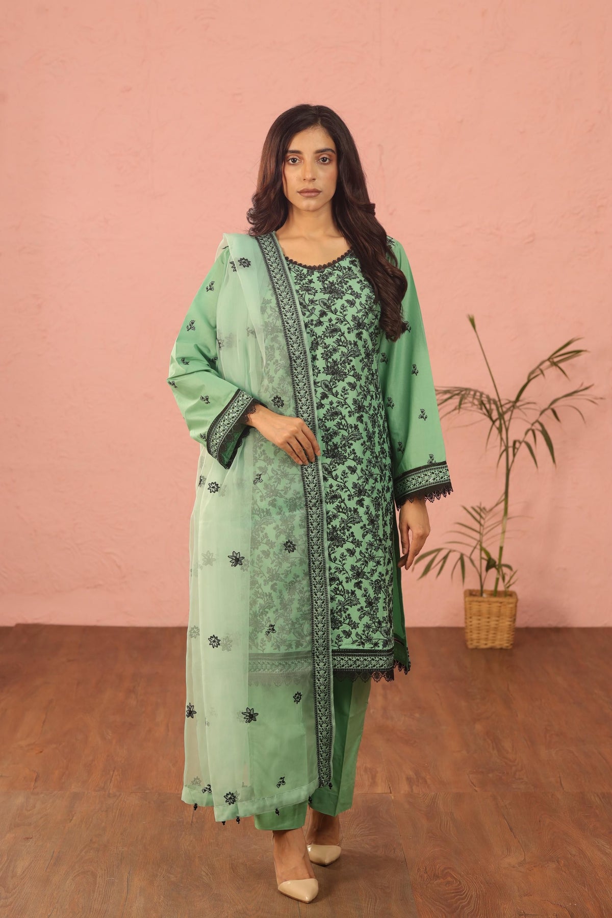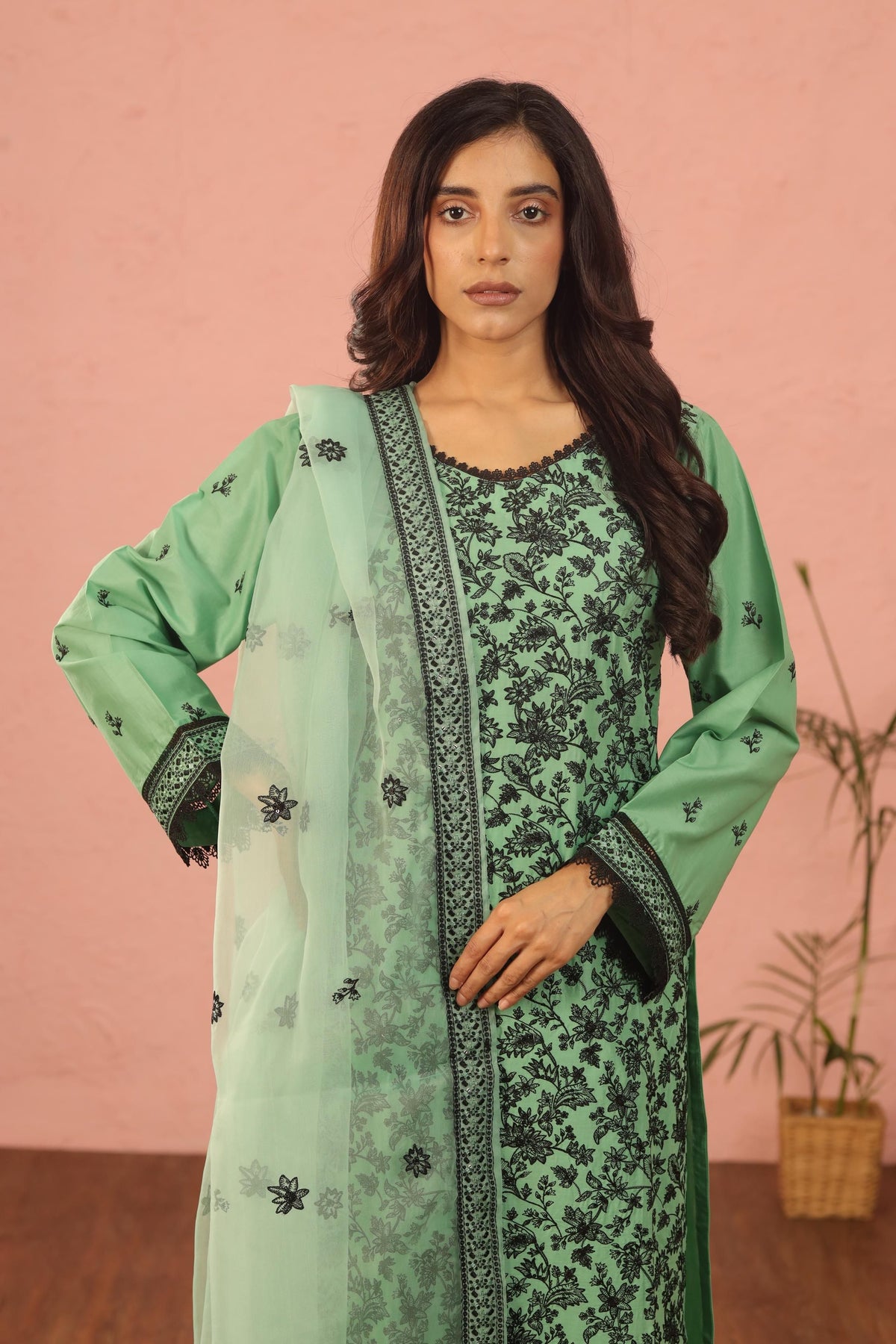 Embroidered Lawn Aqua 3 Piece Suit - Al Karam