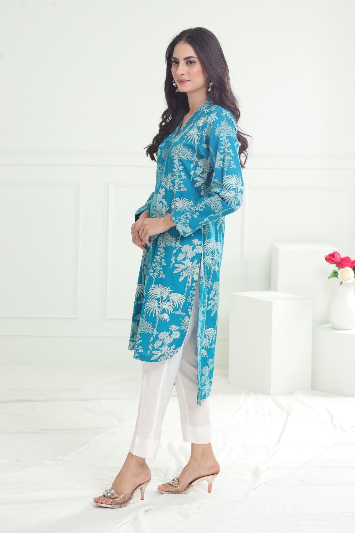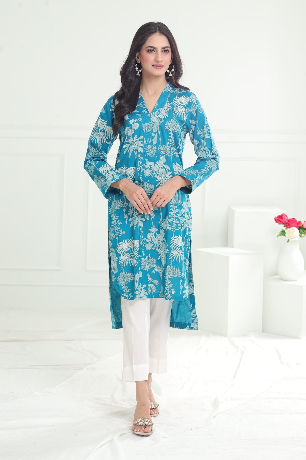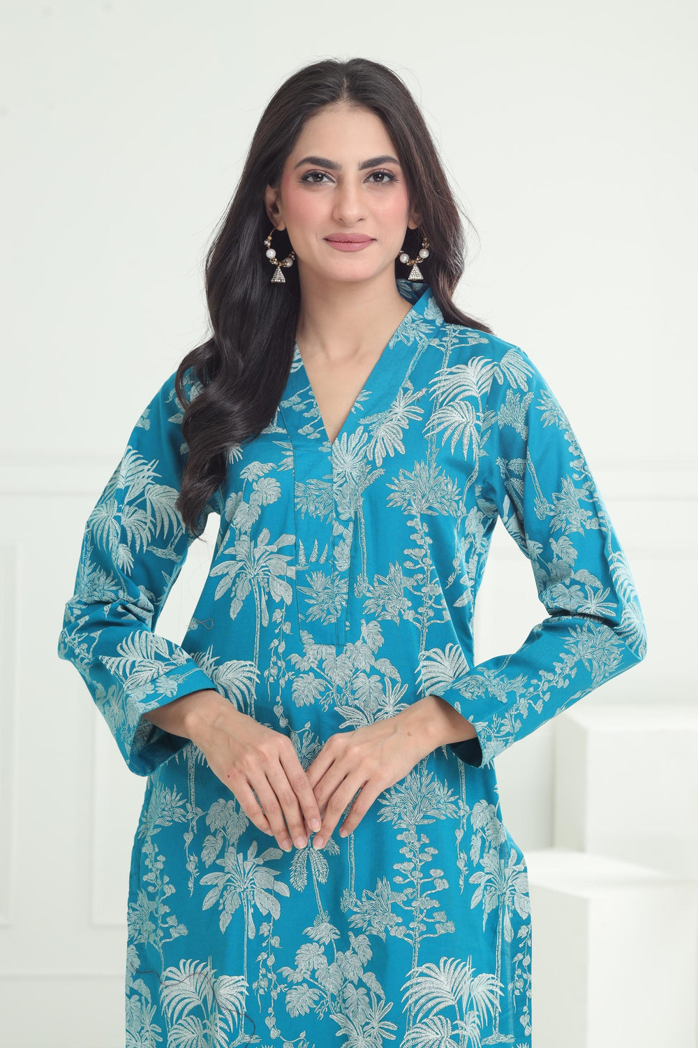 A khaddar kurti traditional garment made from handwoven cotton fabric, known for its breathable, slightly textured feel. It comes in various designs, including embroidered or printed patterns, offering both comfort and style. Ideal for cooler months, it's a popular choice for casual and semi-formal wear.