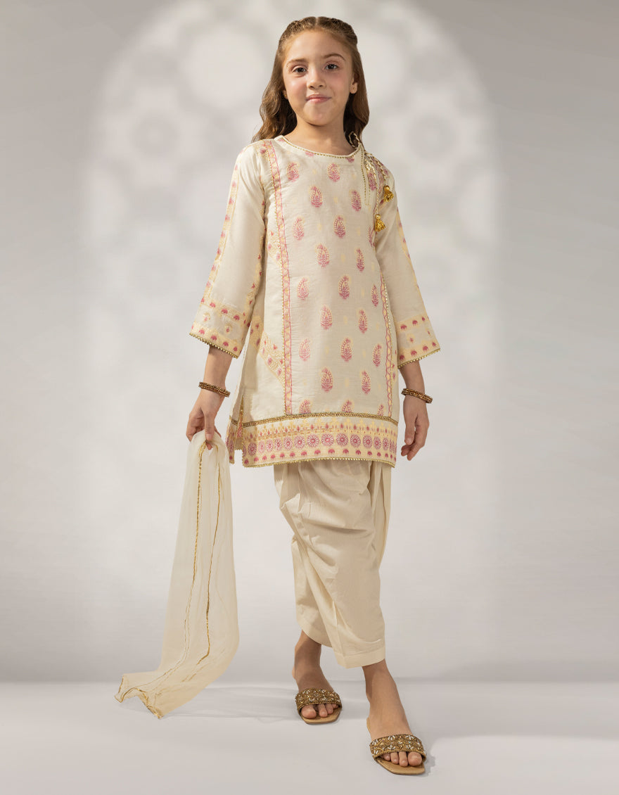 Jacquard Cream Stitched Suit - J. Junaid Jamshed