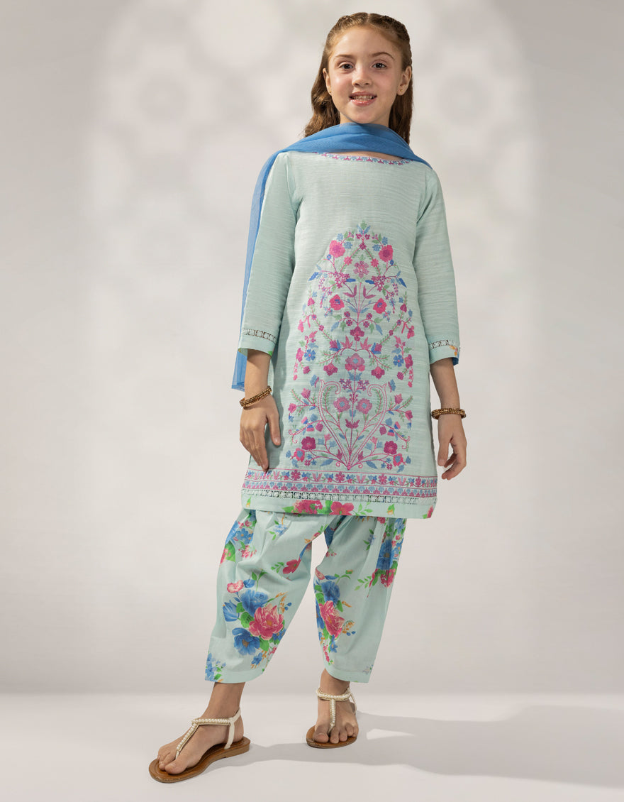 Viscose Raw Silk Turquoise Stitched Suit - Senorita